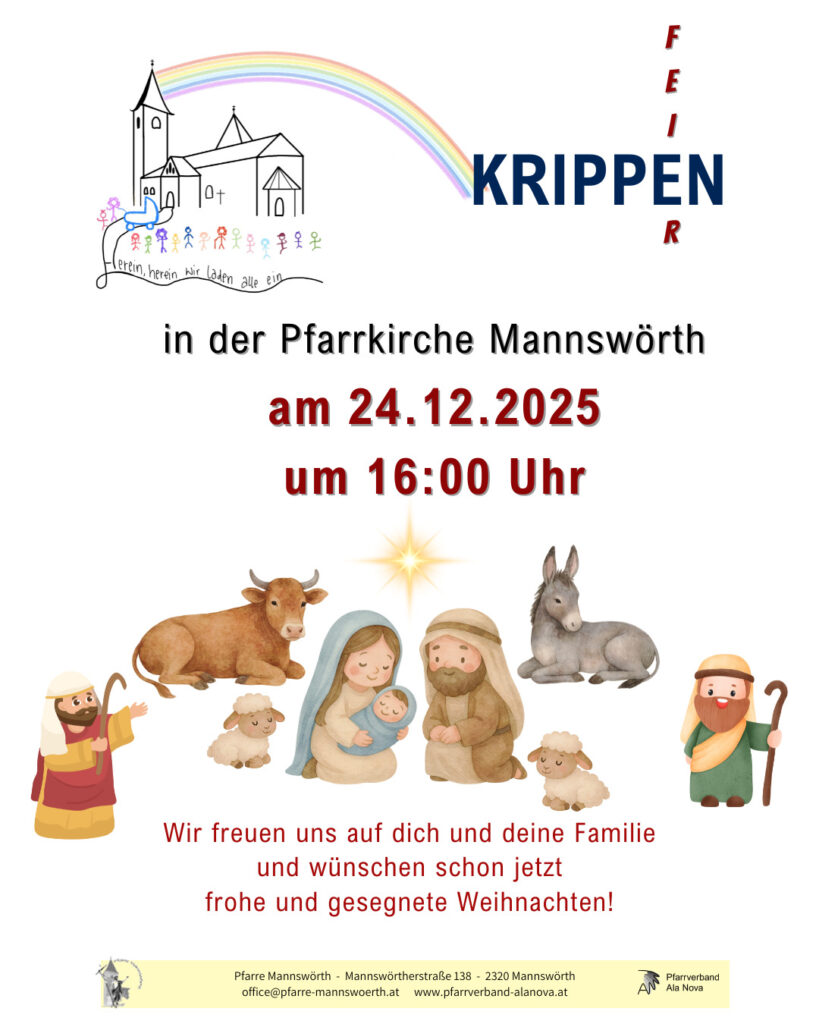 23 Dez. 2025 24.12.2025 Krippenfeier von office@pfarre-schwechat.at | Veröffentlicht in: Mannswörth Ankündigungen | 0