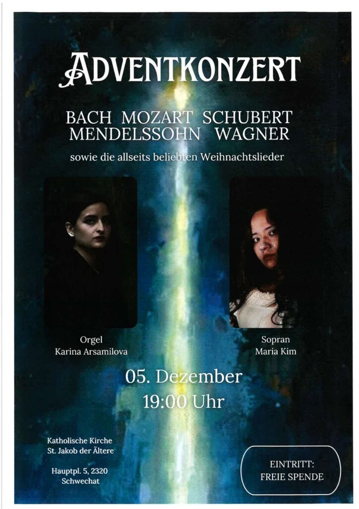 30 Nov. 2025 5.12.2025 Adventkonzert von office@pfarre-schwechat.at | Veröffentlicht in: Schwechat Ankündigungen | 0