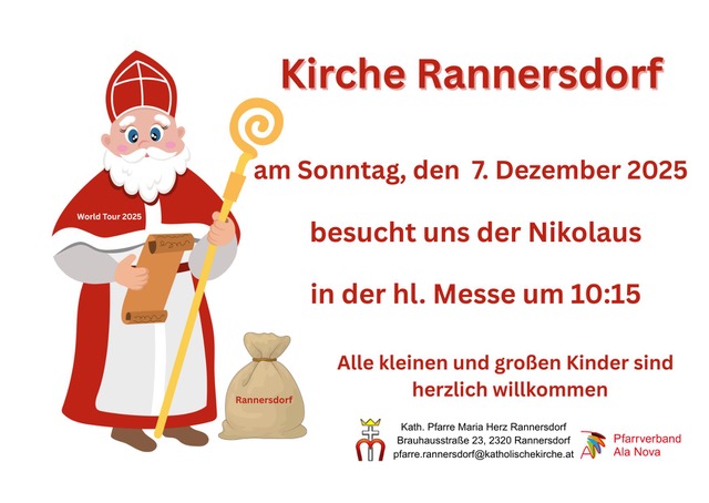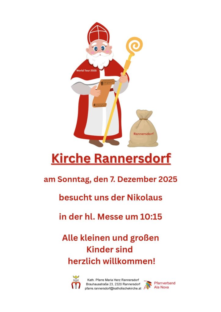 10 Nov. 2025 7.12.2025 Besuch Nikolaus von office@pfarre-schwechat.at | Veröffentlicht in: Rannersdorf Ankündigungen | 0