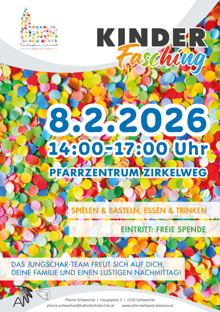 14 Jan. 2026 8.2.2026 Kinderfasching von office@pfarre-schwechat.at | Veröffentlicht in: Allgemein, PGS Ankündigungen, Schwechat Ankündigungen | 0
